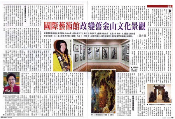 美國國際藝術館坐落於舊金山中心區,館內陳列三十多位世界級東西方藝術家的精品,經過八年革新,成為舊金山新的藝術文化地標。H.H. 第三世多杰羌佛「韻雕」作品《一柱擎天》在館內展出,吸引全球不少修行者專門到場靜坐和觀想。