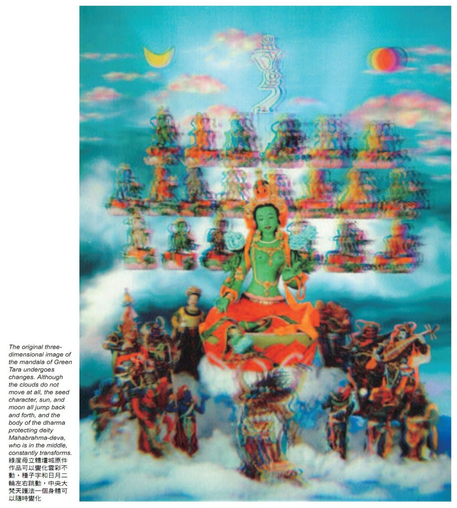 在世界上的第一幅立體唐卡西方三聖及綠度母立體壇城也是經三世多杰羌佛多次修訂安裝構思佈局,成為莊嚴壇城佛像圖。