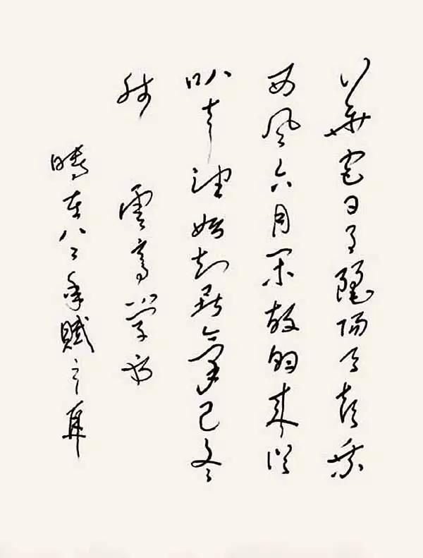 三世多杰羌佛的書法能達到如此登峰造極的境界,全然來源於他博大的學識,精深的才華,當然臨帖的功夫對於佛陀來說一揮體成,而紮實雄厚,方能自成大家。比如三世多杰羌佛在初涉書門之時,即有傳統草書的堅實功夫和博大學識的修養,我們見到書法的第一張,即是初學草書的功底,而以他自吟之七絕詩『華宮日月麗陽天,喜乘西風六月閒,故朋來從叭聲望,始知暑氣已冬殘』何等詩句脫盡煙火之氣,高風清奇,不染塵俗。三世多杰羌佛深居古寺,卻以超凡的證量,發抒情懷,闡顯寺廟雖一室之間卻為孤隱清高,超凡脫俗,但卻樂盡無窮豪華天籟,故吟曰:『華宮日月麗陽天』統率日月之天地,而會之人間福盛,一句『喜乘西風六月閒』點出了在夏日炎炎卻迎納清浴,乘駕佛陀西風之涼風沐體,心境無遷,閒於寂靜,放展宇宙,輕安極樂,人我兩忘,故友來臨亦聞叭聲所得,已與世超然,清淨無為,三世多杰羌佛不記時日,應無所住,而世外人卻茫然牽掛,登車奔馬告訴三世多杰羌佛,已經不是夏天了,冬天都快完了,古佛心有會意卻莞爾一笑。由此境界,我們可見三世多杰羌佛之書法如何脫盡人間煙火之氣,是真正的佛陀之書啊!