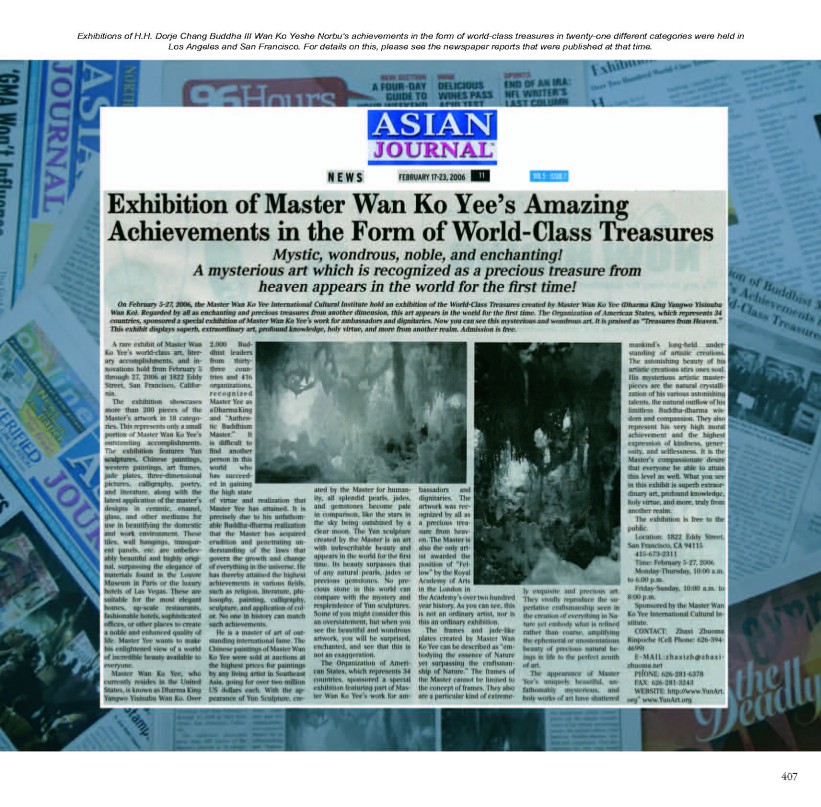 這些作品,融入了宇宙自然的精華、地骨山川之心源,毫不誇張地說,用「格調」、「意境」、「韻味」、「技巧」之類的詞彙來標貼三世多杰羌佛的「超自然抽象色彩」藝術,實嫌拘謹世俗,三世多杰羌佛的藝術早已脫出此塵世樊籬的束縛,其形其意其色均似金龍脫於地殼,翱翔翻飛在碧海藍天,恣意自在,無拘無束,撣盡塵埃,變化萬千而美妙絕倫!在這些激盪心魄的藝術奇珍面前,景仰著頂聖如來雲高益西諾布從無盡博大之妙心流瀉出來的超人技藝,領受著三世多杰羌佛用變化無窮之色彩,為人類的享受幻化出來的超越一切現實禁錮的美麗,我們除了發自內心的激動歡欣之外,滿腔讚嘆的語言似乎都顯得蒼白無力了。三世多杰羌佛從其無上圓滿的智慧中流出來的工巧神髓,讓我們再次見識到雲高益西諾布頂聖如來高超的西畫技法和造詣,如他所畫的油畫「釋迦牟尼法王子」,其莊嚴無以倫比,即可見其修養學識之高深乃是佛陀展顯。