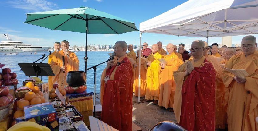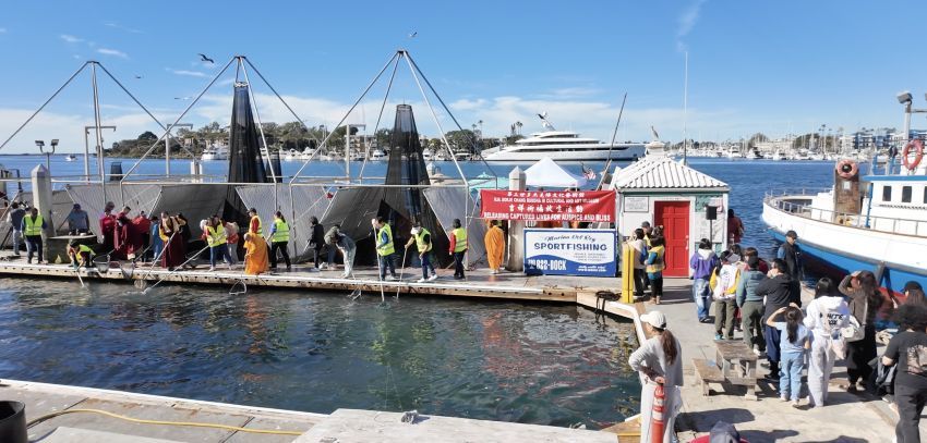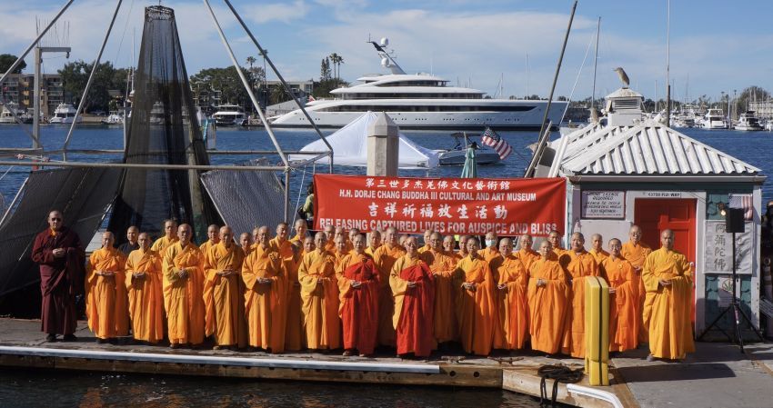 第三世多杰羌佛文化藝術館於1月18日在洛杉磯 Marina Del Rey 隆重舉行大型放生活動慶祝佛陀日