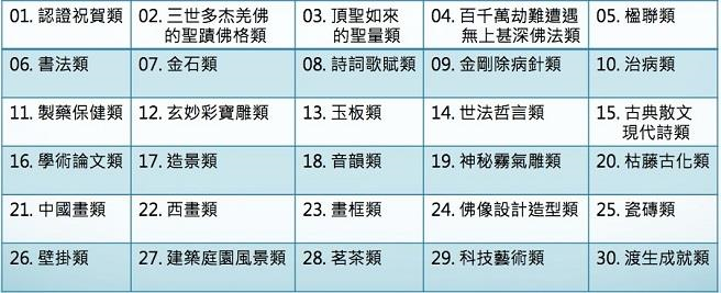 2008年出版的《多杰羌佛第三世》一書中就明載了佛陀少部份的的三十大類成就(表1.多杰羌佛第三世寶書三十大類一覽表) ,H.H.第三世多杰羌佛的成就不可思議的廣大無邊,僅僅就「畫作」一項而言,H.H.第三世多杰羌佛不但能畫所有現在畫派的風格,包括寫實、抽象、印象等等,還首創了16個畫派(表2. H.H.第三世多杰羌佛十六畫派),此次展出蓮 (潑墨微韻派)、紫竹林中的香絲瓜 (微印派)、向日葵 (厚堆色塊派)、吉祥牛 (獷細派) 神幻島的奇觀 (微印派)等,幅幅精彩絕倫。