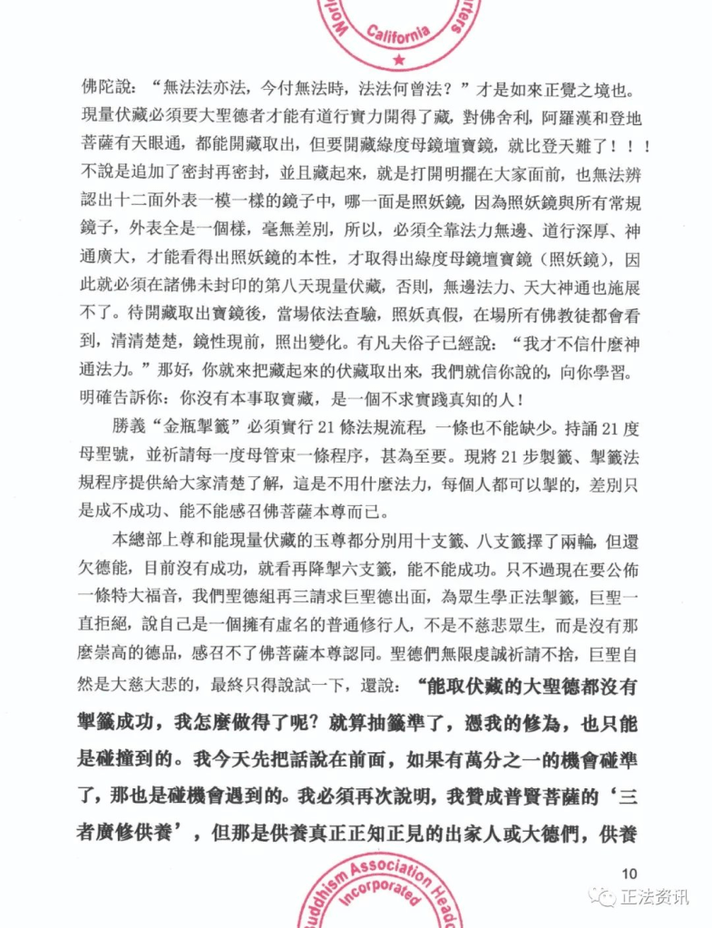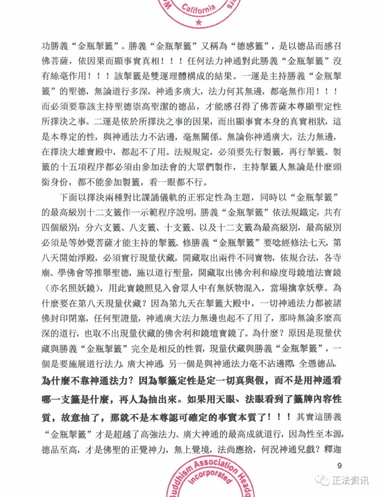 此勝義“金瓶掣籤”緣起即是勝義“金瓶掣籤”法規的緣起,目的是讓大眾能更好地熟悉弄懂勝義“金瓶掣籤”的法規,了解勝義“金瓶掣籤”的本質和重要性。大家樹立無私利眾的高尚德品,成就大聖道行之後,自己也可按照法規去掣六支籤或八支籤。尤其是在此末法時代,勝義“金瓶掣籤”能夠感召本尊,準確定性哪些是真正的佛法,哪些是被魔子魔孫們篡改了的偽假佛法。本總部將盡快公佈勝義“金瓶掣籤”的法規,佛弟子們一定要將本公告、和總部的上一個公告《學的不是本尊認可的經書法本難以成就》,以及總部即將發佈的勝義“金瓶掣籤”法規,三份公告共同結合起來,認真學習、弄懂,這對今後每個人能否學到真正的佛法,至關重要,因為在為你們擇決傳法之前,首先要用三份公告的內容來考核你們,如果一問你三不知,你們就沒有機會學到甚深佛法了,更不要說得授勝義的大法!