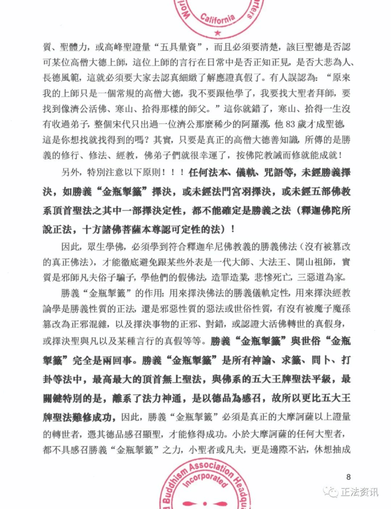 另外,特別注意以下原則!!!任何法本、儀軌、咒語等,未經勝義擇決,如勝義“金瓶掣籤”擇決,或未經法門宮羽擇決,或未經五部佛教系頂首聖法之其中一部擇決定性,都不能確定是勝義之法(釋迦佛陀所說正法,十方諸佛菩薩本尊認可定性的法)!