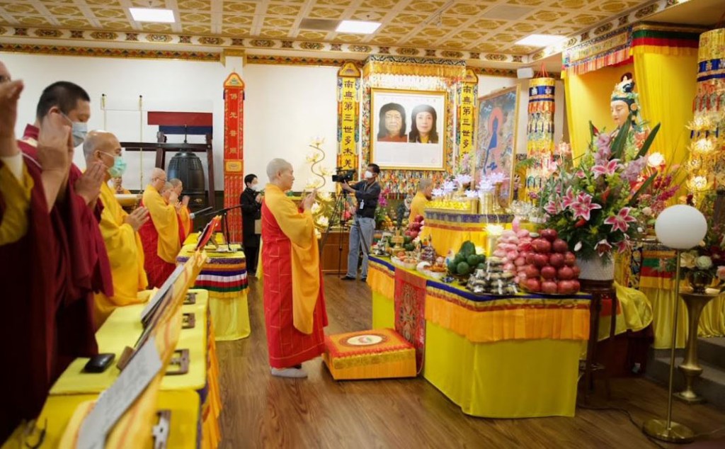 世界佛教總部在聖蹟寺大雄寶殿啟建南無藥師如來佛誕法會,由副主席證達教尊主法