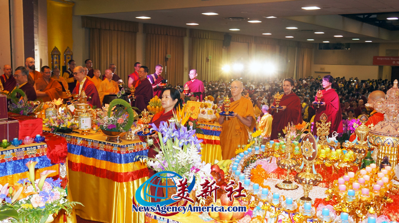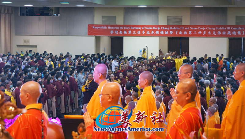 七月一日,恭迎南無第三世多杰羌佛佛誕大法會上座無虛席,盛況非常,來自美國各州及中國、德國、日本、加拿大、泰國、馬來西亞、新加坡、秘魯、台灣、香港等國家及地區的尊者、法師、仁波切、阿闍黎、聞法上師、居士等,共一千多人參加了這場盛大的法會。