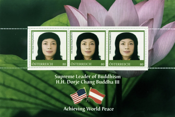 H.H.第三世多杰羌佛無私貢獻利益一切眾生,從不接受任何供養,這在世界上是找不到的。現在世界許多國家為了尊崇H.H.第三世多杰羌佛崇高的道德和無私的慈悲精神,主動發行了H.H.第三世多杰羌佛郵票,這是佛教史上的一大盛事。佛陀的郵票是集郵界極為稀有難得的珍品,不僅可以郵寄使用,更是珍貴的紀念品。歡迎大家踴躍請購!