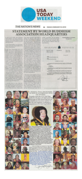 USA Today–Statement by World Buddhism Association Headquarters (2-15-2019) 今日美國報–世界佛教總部聲明