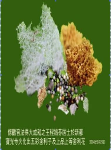 王程娥芬老居士的骨灰中,共揀出了六十多枚五彩舍利,黃色白色上等舍利花。