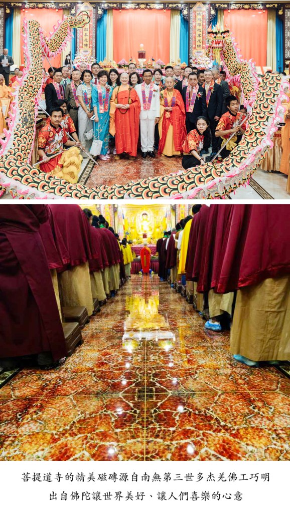 【記者 楊宜/專題報導】有別於一般開幕走紅毯,菩提道寺開光大典貴賓走過的大雄寶殿主走道、舞龍舞獅熱鬧開場表演的主場域,是一條寬敞紅色磁磚大道,古典慶賀表演文化搭上現代華貴的裝飾風格,中西融合,不僅不違和,反是別出心裁,讓人耳目一新!