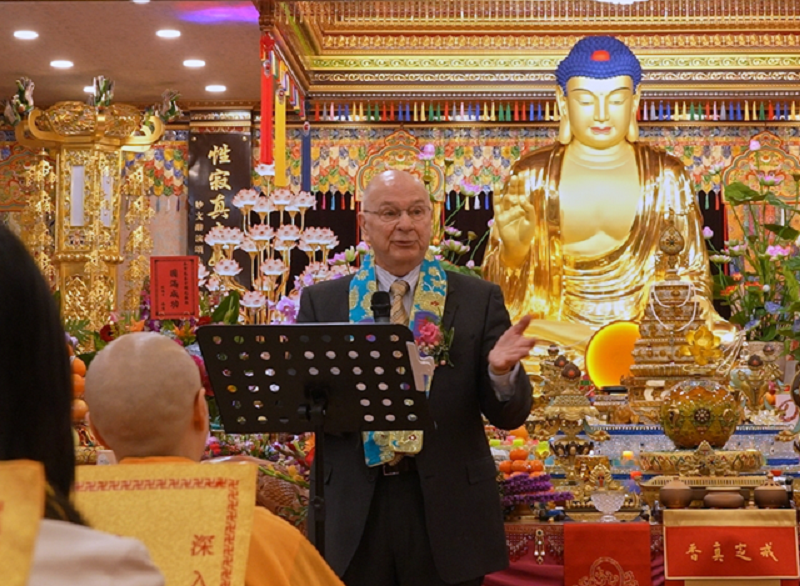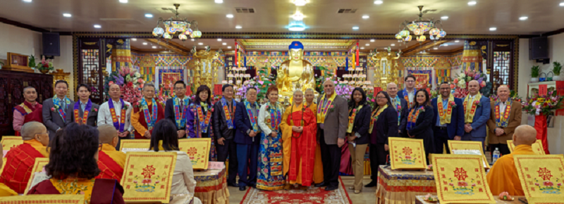 內華達州副州長Stavros S. Anthony 致詞時表示:非常榮幸參加慈善寺開光慶典,肯定慈善寺為融合社區不同宗教及族群所作的努力並致贈賀狀。拉斯維加斯大都會警察局代表Ryan Rafferty,和拉斯維加斯市議員Olivia Diaz 的代表Anastacia Del Real 也分別上臺致詞恭賀慈善寺落成。拉斯維加斯市議員Victoria Seaman的代表 Christina Tehahe和內華達州國會眾議員Dina Titus的代表 Gipsy Martinez也上臺致詞恭賀慈善寺開光並致贈賀狀。內華達州國會眾議員Susie Lee 的代表Alberta Obodai 轉達了Susie Lee的祝福,並告知來賓國會眾議員Susie Lee因身在華盛頓無法參加慶典,日後一定會親自至寺廟拜訪恭賀落成。佛教刊物資深編輯James Debate上臺致詞時分享其學佛的心得,並肯定釋證達教尊的深遠願景以及為建設慈善寺而付出的一系列努力。慈善寺護法功德會Alain Uboldi會長致詞感謝各級政府官員們特別抽空前來參加慶祝慈善寺的開光慶典,分享慈善寺的建立得益於南無第三世多杰羌佛和釋證達教尊的遠見,也分享他學習佛陀正法三年多,親眼看到了所有的參與者、佛弟子們,包括他自己學習如何發慈悲心不斷地利益社會上的其他人。釋證達教尊在致詞中對社會各界人士出席慈善寺的開光法會深表感謝,並呼籲大眾虔誠恭聞南無第三世多杰羌佛的法音,真正修行學佛,菩提利生。