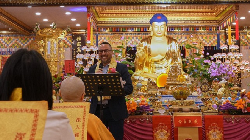 (拉斯維加斯訊)拉斯維加斯慈善寺於1月18日上午舉行開光法會,法會禮請世界佛教總部副主席釋證達教尊主法。現場嘉賓雲集,世界政商名流集聚,內華達州副州長(Nevada Lieutenant Governor)Stavros S. Anthony、國會眾議員Dina Titus特派代表Gipsy Martinez、國會眾議員Susie Lee特派代表Alberta Obodai、拉斯維加斯大都會警察局代表Ryan Rafferty、北加州舊金山藝術館館長謝光中,台灣中華國際佛教聞修正法會會長楊友善、維加斯新聞報社長吳治歐、內華達州華人協會會長顧雅文、拉斯維加斯台灣同鄉聯誼會會長王建平、慈善寺護法功德會會長Alain Ubodhi、佛教刊物資深編輯James Debate、以及拉斯維加斯市議員Victoria Seaman 和Olivia Diaz 也分別派代表蒞臨參與盛會。此外,寺方禮請內華達州政府、拉斯維加斯市政府各級長官、世界政商名流、善信貴賓共21位剪綵及揭開布幔。現場有來自美國各州、加拿大、中國、泰國、香港、臺灣等不同國家和地區500多人與政商名流親臨現場恭賀,共同見證及慶賀佛教正法寺廟在拉斯維加斯的落成。