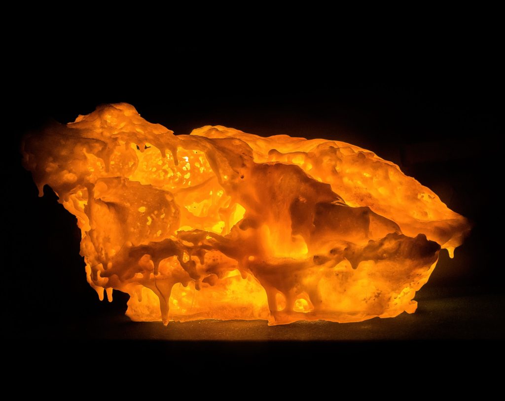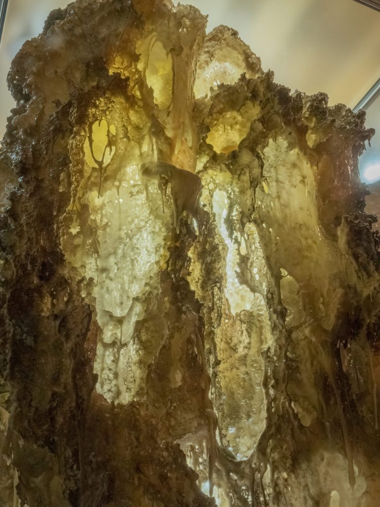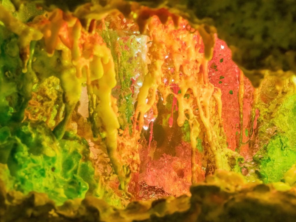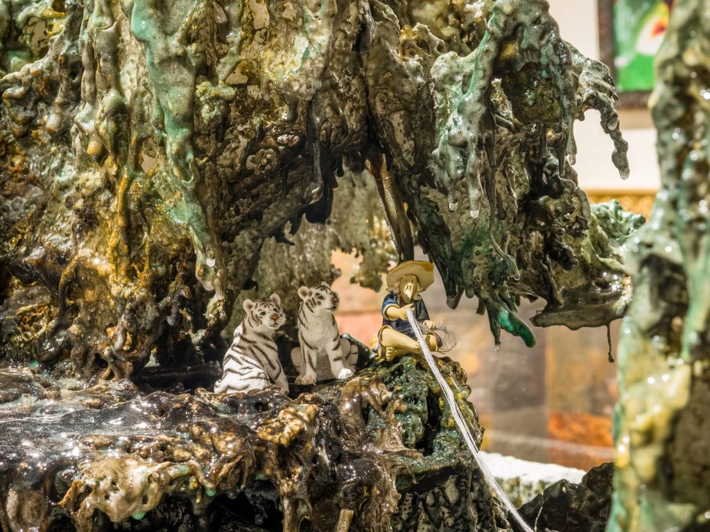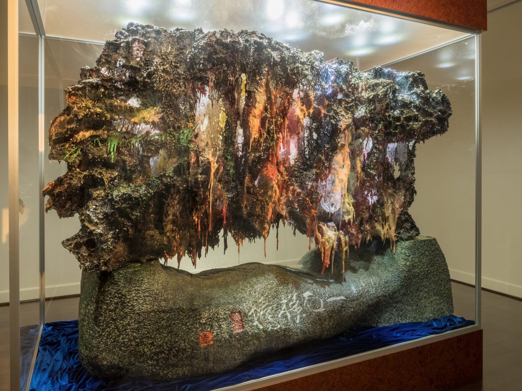 The substance of the Yun sculptures is imbued with resplendent colors that at once enhance their elaborateness and make their effect more mutable. Color is a transient quality and registers differently in different conditions and with different viewers. The configuration of these lustrous hues makes one think of those found in nature, such as in precious stones, and yet the intensity seems to bloom before our eyes rather than lock in place. It’s as if there is a fire within that animates.