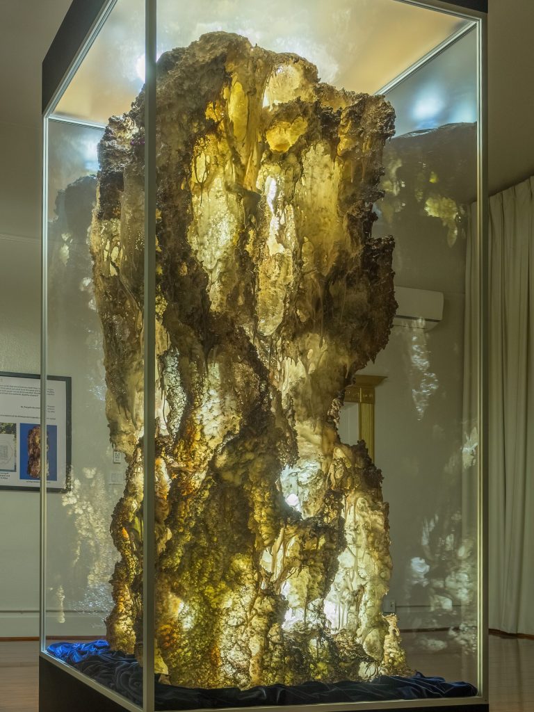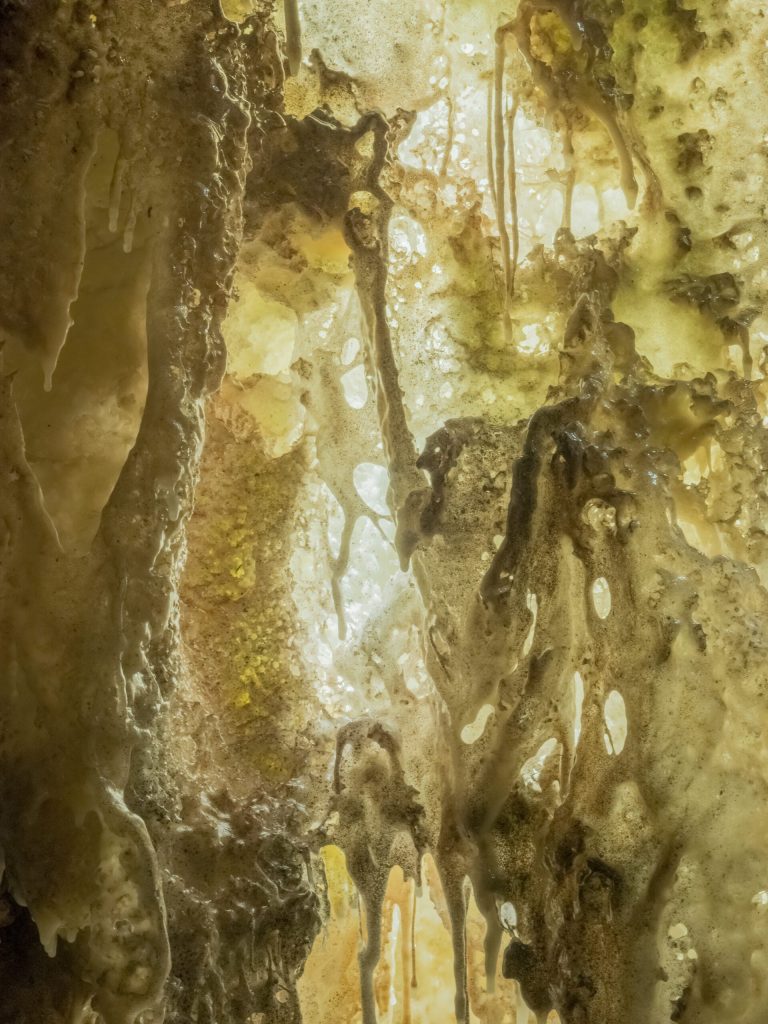 Through attributes reminiscent of shaping processes of our world, these artworks suggest the otherworldly. At first singular and imposing, the Yun sculptures up close reveal an intricacy that appears to extend to depths that exceed the sculpture’s size — a magnitude greater than the volume. While the objects in actuality have limited dimensions, they defy any quantifiable understanding, and their assertive and highly wrought materiality is a means to go beyond to the metaphysical. To be with them is to encounter an enigma that asks us to contemplate our own spiritual nature.