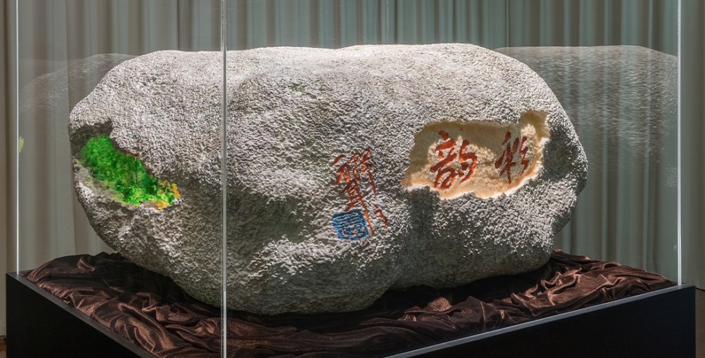 The translucence of material allows the Yun sculptures to interact with light in a way that mesmerizes. Pigments reflect the ambient light, and at places where the material is more attenuated there is a glowing quality. Rather than surface alone, these sculptures have a beckoning interiority. The sculpture in its entirety has an interplay of form and void characterized by luminescence, which makes them imposing while destabilizing any fixed perception. With sculpture, we expect solidity, but H.H. Dorje Chang Buddha III offers us an experience of impermanence, which is one of the fundamental teachings of Buddhism. The world of appearances may seem real, but it is an illusion. The world may seem solid, but everything changes.