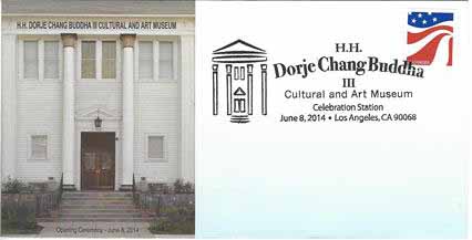 In commemoration of this auspicious event, the US Postal Office approved and issued a special post mark of H.H. Dorje Chang Buddha III Cultural and Art Museum, using the logo and full name of the museum in the design, to recognize and praise the outstanding contributions to human’s philosophy, culture and art by H.H. Dorje Chang Buddha III.