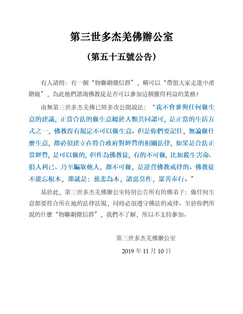 | 第三世多杰羌佛辦公室 (第五十五號公告) |