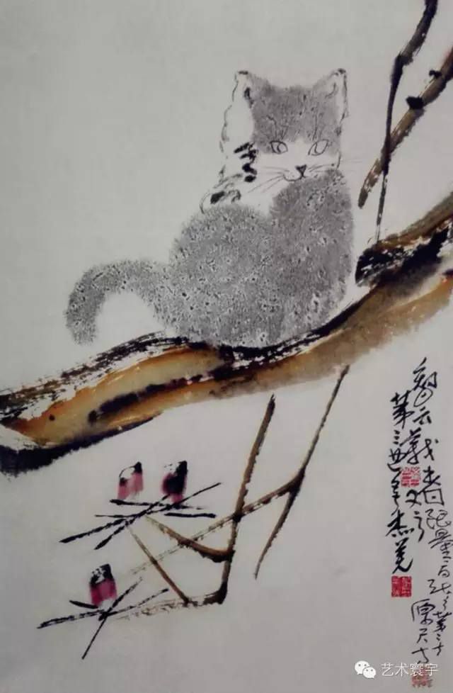 “靈貓”這一幅畫創作於一九九一年,屬於第三世多杰羌佛創始的十六個畫派之一的“放發派”風格,除第三世多杰羌佛以外,在世界上找不到第二位藝術家能畫出這種神妙技法。平面里蘊含神韻奇蹟,任何人都無法用手筆複製成功,這種創作技法來於智慧境界,所以不是凡品書畫。其配鏡寥寥幾筆,金石書卷味全在其中,神形兼備,是真正達到惜墨如金,是絕對的書畫頂峰藝術。此畫珍貴無比,第三世多杰羌佛已將此類神韻畫封筆,沒有再畫這類無上經作了,因此,這已成為絕版藝術。