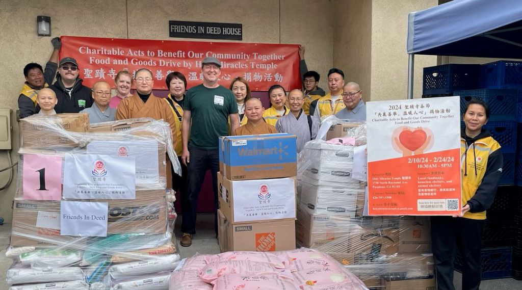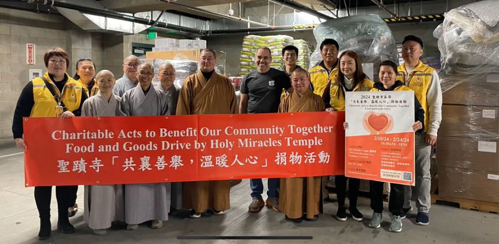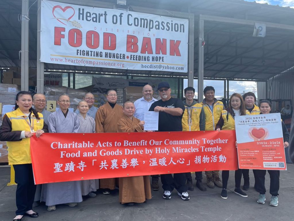 (本報訊)帕薩迪那市(Pasadena)世界佛教總部和聖蹟寺,秉持世界佛教教皇南無第三世多杰羌佛大悲利他的行持教導,特於農曆春節期間舉行「共襄善舉,溫暖人心」捐物活動 (圖),為當地食物銀行、遊民庇護所、動物收容所籌募物資。