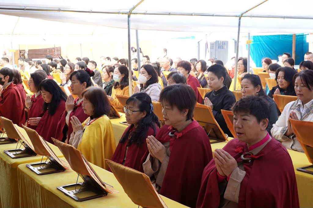 在若慧孺尊的帶領下,與會現場的善信居士恭誦「觀世音菩薩普門品」,並舉行佛前大供,祈請觀世音菩薩護佑,世界和平,國泰民安。寺方設有消災祈福名單,供信眾為自己及家人祈求福慧圓滿,身體健康。