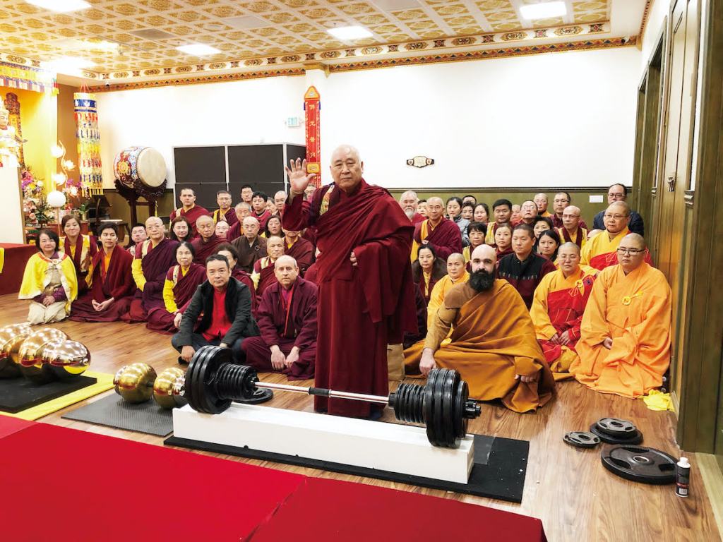 華府新聞日報:拿杵上座法會 高僧們出難題 羌佛解難單手提懸420磅金剛杵 2020年報導 2020年02月24日