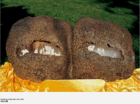 第二, 他雕刻成的鹅卵石,在石洞中更有美不胜收的玄妙幻化天地,并有祥雾缭绕、妙趣无穷的气体,他是唯一能将气体雕刻出来的历史性的创始人;