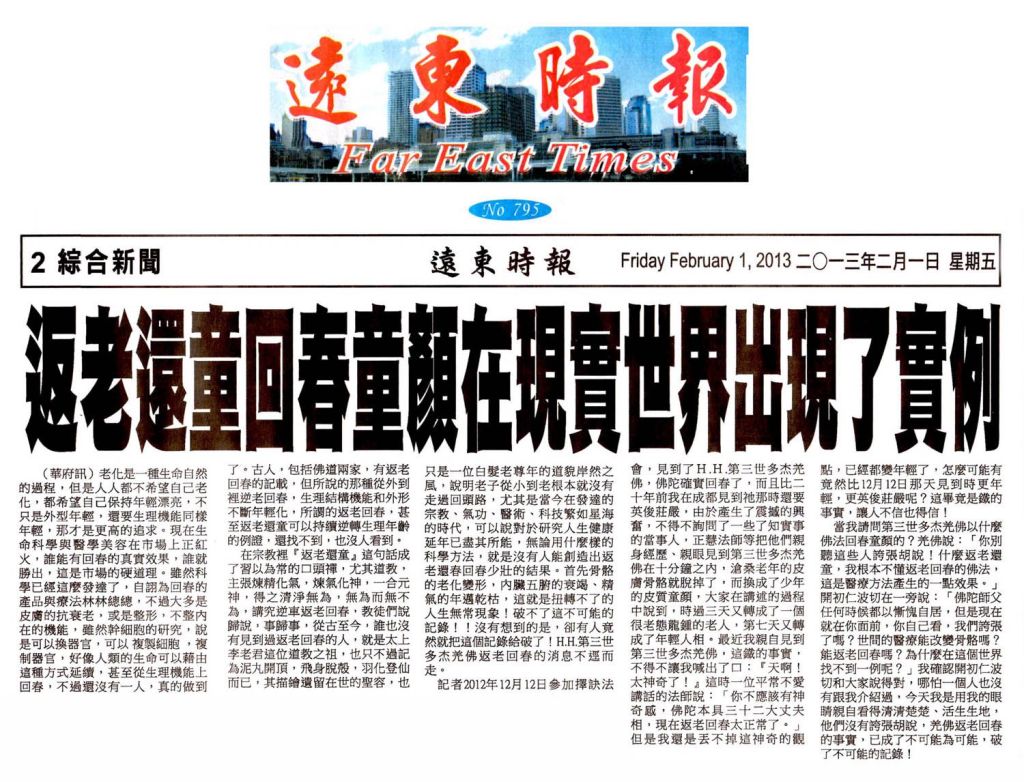返老還童回春童顏在現實世界出現了實例 (遠東時報) 返老回春成事實(新聞雲)