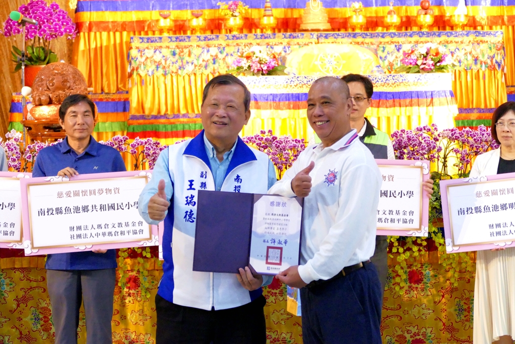 副縣長王瑞德代表縣長許淑華出席了瑪倉文教基金會在魚池國小舉辦的圓夢感恩關懷活動,他表示,這次活動由瑪倉文教基金會捐贈給魚池鄉內國中小的120名學生,讓弱勢孩子能夠實現他們的夢想。這樣的舉動,只要是為了社會的互助共好,縣府都非常支持。這不僅能激勵孩子們實現他們小小的夢想,也鼓勵他們追求更遠大的目標。