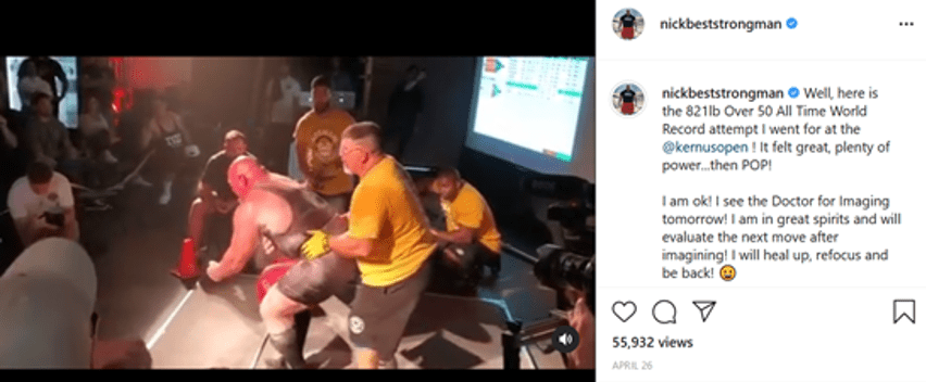 About three weeks out from the US open(Kernusopen), I pulled 820 in training. It was good, I mean, it felt great. Pulled it right up, no problems. Figured I was good for 859 on a third and that was kind of the plan going into it: take a nice light opener, pull a new world record and then try to break it even further with that.